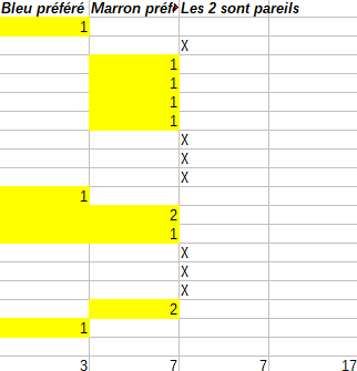 D'autres résultats (5, 6, 14, 15, 17) sont assez étonnants : les individus ont trouvé plusieurs fois le même goût mais préfèrent néanmoins une certaine couleur !
