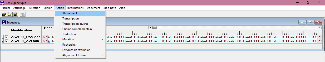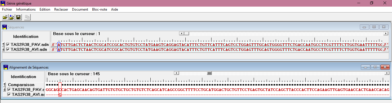 Tout d'abord, nous avons aligné les séquences des deux allèles.