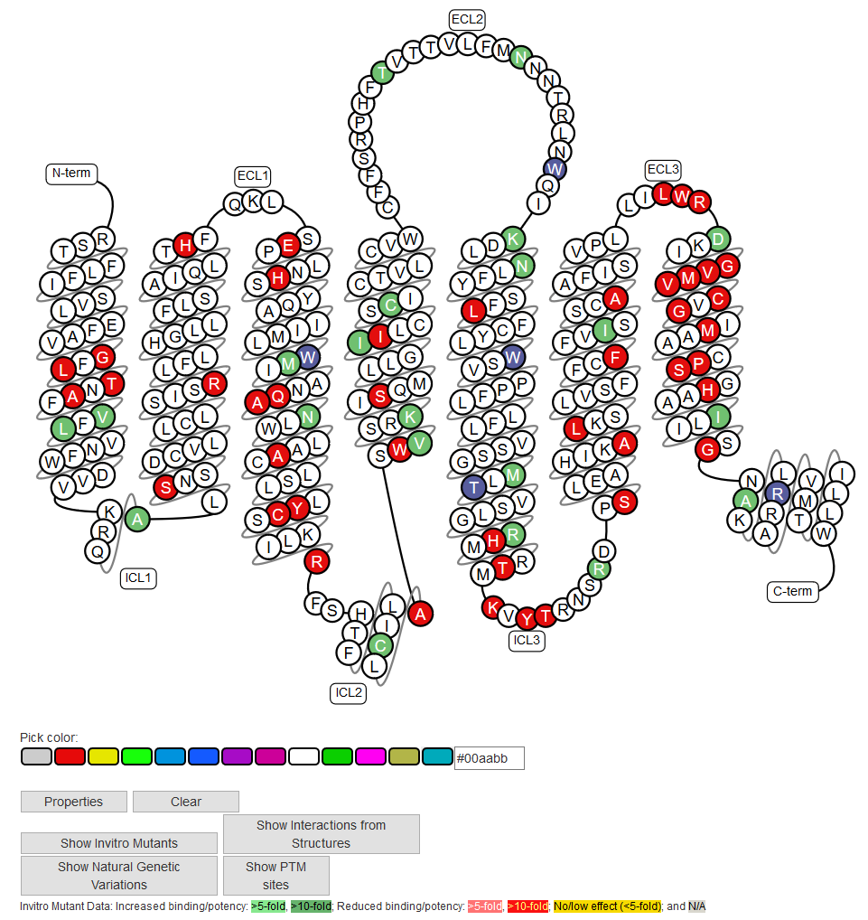 L'allèle PAV est considéré comme l'allèle ancestral dans l'espèce humaine. Une personne ayant comme génotype (PAV//PAV) sera très sensible au PTC, (PAV//AVI) sera sensible et (AVI//AVI) sera insensible. Il existe à ce jour trois autres allèles connus (AAV, AAI comme vu plus haut et PVI) mais il en existe sûrement d'autres comme le montre le schéma ci-dessous représentant les mutations possibles sur le gêne TAS2R38. L'acide aminé au rang 49 montre bien qu'une mutation peut changer la forme de la protéine et ainsi la capacité du PTC à se fixer ou non sur les récepteurs. Sur le schéma interactif ci-dessous, se trouve non pas la représentation de l'allèle PAV comme nous le croyions, mais celle de l'allèle AAI (rang 49 = Alanine / rang 262 = Alanine / rang 296 = Isoleucine).