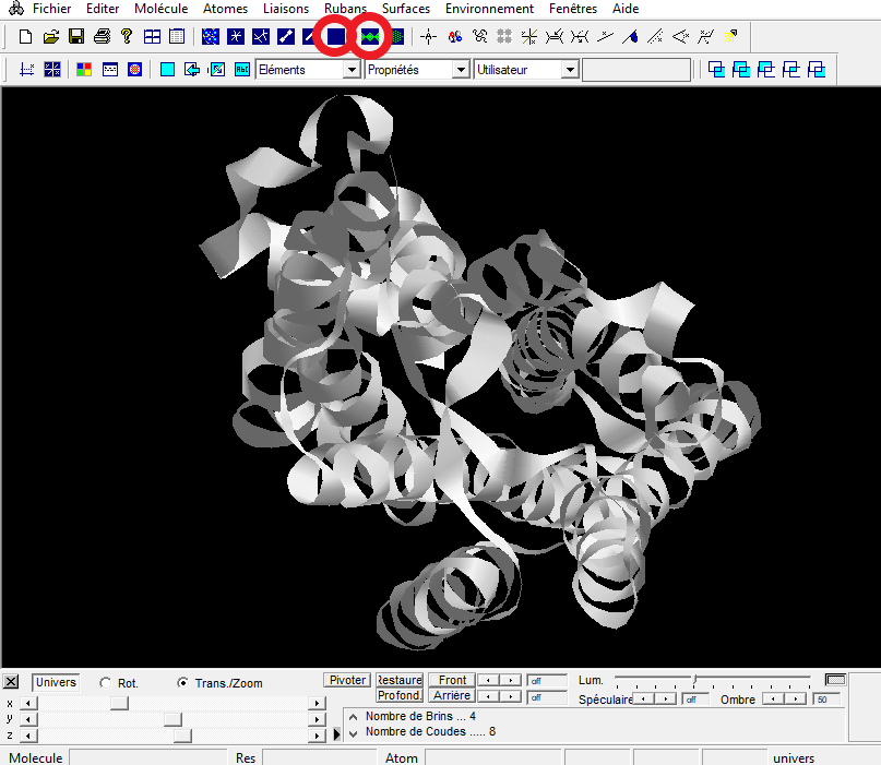 Nous avons d'abord représenté les molécules en mode "hélice" et en blanc.