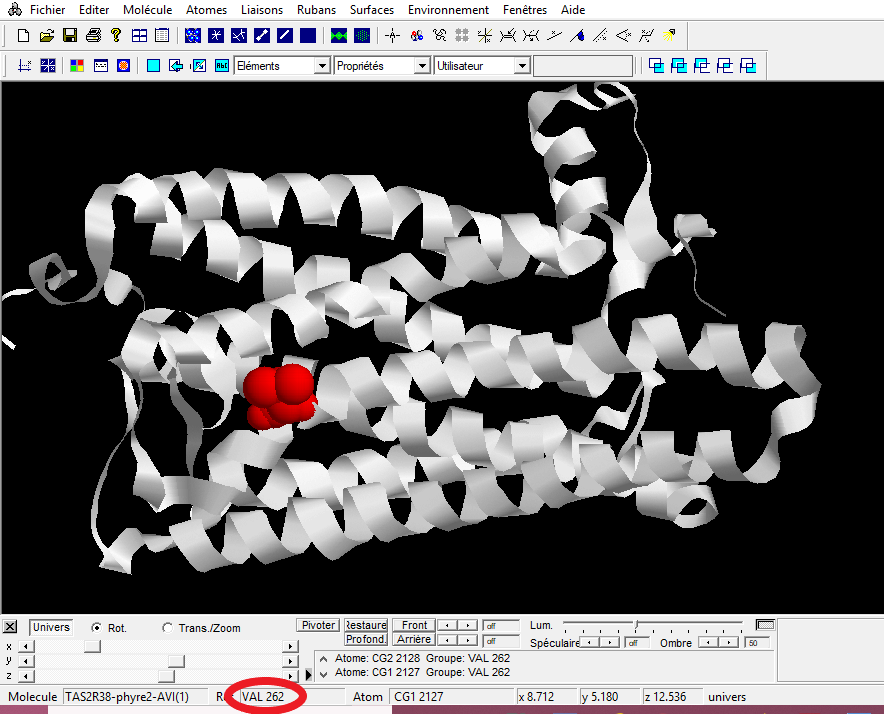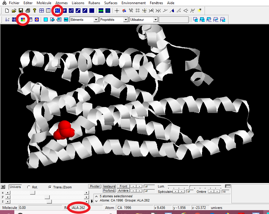 Puis nous avons mis en évidence l'acide aminé situé au rang 262, donc ici de l'alanine